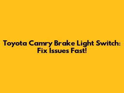 Toyota Camry Brake Light Switch: Fix Issues Fast!