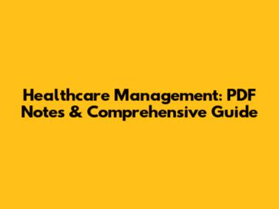 Healthcare Management: PDF Notes & Comprehensive Guide