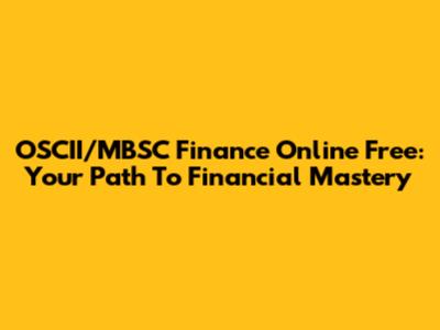 OSCII/MBSC Finance Online Free: Your Path To Financial Mastery