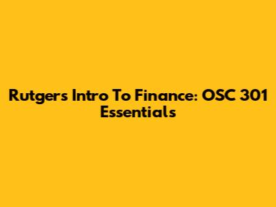 Rutgers Intro To Finance: OSC 301 Essentials