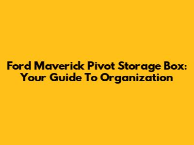 Ford Maverick Pivot Storage Box: Your Guide To Organization