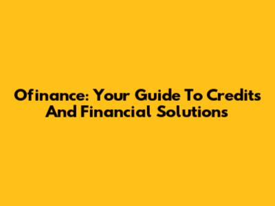 Ofinance: Your Guide To Credits And Financial Solutions