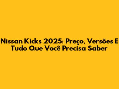 Nissan Kicks 2025: Preço, Versões E Tudo Que Você Precisa Saber