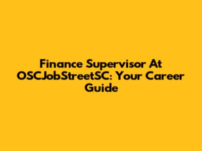 Finance Supervisor At OSCJobStreetSC: Your Career Guide