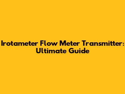 Irotameter Flow Meter Transmitter: Ultimate Guide