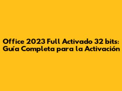 Hey guys! So, you're looking to get your hands on Office 2023 full activado 32 bits, right? You've come to the right place! This comprehensive guide will walk you through everything you need to know about activating Office 2023 on your 32-bit system. We'll cover what you need, the steps involved, and some essential tips to ensure a smooth and successful activation. Let's dive in and get your productivity game on point!