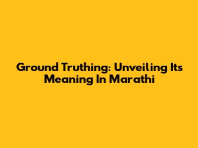 Ground Truthing: Unveiling Its Meaning In Marathi