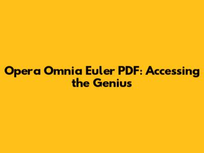 Okay, so you're stoked and want to get your hands on this treasure trove, right? Finding the Opera Omnia Euler PDF can be an adventure, but there are some reliable places to start your search. One of the best options is to check the Euler Archive. The Euler Archive is a project that aims to digitize and make accessible the works of Leonhard Euler. You can often find a good selection of his works available for free download. Also, many universities and libraries have digitized versions of the Opera Omnia. Some university websites provide links to downloadable PDFs of various volumes. This is an awesome resource, as the quality is usually pretty good, and you know the source is trustworthy. Always double-check the legitimacy of the source before downloading anything to ensure you are getting a safe and legal copy.