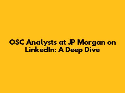 Hey everyone! Ever wondered about the world of OSC analysts at JP Morgan and how they leverage LinkedIn? Well, you've come to the right place! We're going to dive deep into what these professionals do, how they utilize LinkedIn, and how you can learn from them. This is all about breaking down the roles, responsibilities, and networking strategies employed by OSC analysts. We will uncover how they are using LinkedIn to elevate their careers and build a strong professional network. Plus, we'll explore some practical tips and insights that you can apply to your own career journey. Whether you're a seasoned professional looking to refine your LinkedIn presence, or a student charting your course in the financial sector, this article is designed to give you valuable takeaways. Let's get started and unpack the exciting world of OSC analysts at JP Morgan!