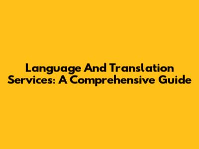 Language And Translation Services: A Comprehensive Guide