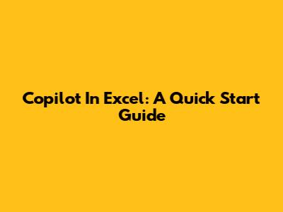 Copilot In Excel: A Quick Start Guide