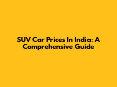 SUV Car Prices In India: A Comprehensive Guide