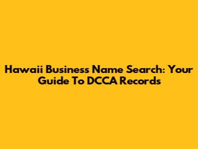 Hawaii Business Name Search: Your Guide To DCCA Records