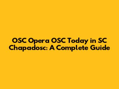 Hey guys! Let's dive into everything you need to know about OSC Opera OSC happening today in SC Chapadosc. This comprehensive guide will walk you through what OSC Opera OSC is all about, why it's significant, and how you can make the most of it. Whether you're a seasoned opera enthusiast or just curious about this unique event, we've got you covered. Prepare to be enlightened and entertained as we explore the fascinating world of OSC Opera OSC!