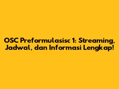 OSC Preformulasisc 1 – Kalian pasti penasaran banget kan, tayangan seru yang satu ini bisa ditonton di mana? Nah, tenang aja, guys! Artikel ini bakal kasih tau kalian semua informasi yang perlu, mulai dari platform streaming, jadwal tayang, sampai bocoran-bocoran seru lainnya. Jadi, siap-siap buat catat semua infonya biar gak ketinggalan keseruannya!