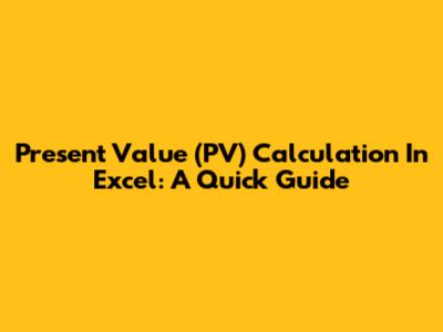 Present Value (PV) Calculation In Excel: A Quick Guide