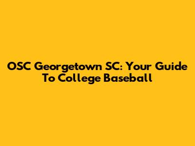OSC Georgetown SC: Your Guide To College Baseball