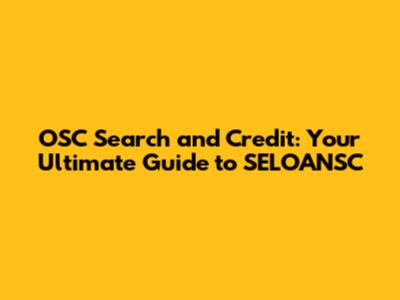 Practical Steps: Navigating OSC Search and Credit with SELOANSC