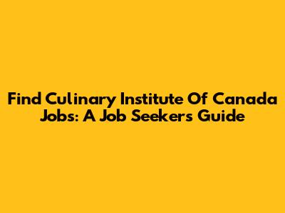 Find Culinary Institute Of Canada Jobs: A Job Seeker's Guide