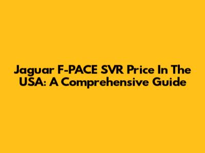 Jaguar F-PACE SVR Price In The USA: A Comprehensive Guide