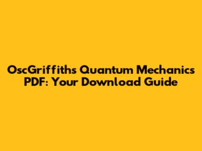 So, what exactly makes the OscGriffiths Quantum Mechanics PDF so popular? Here's the lowdown: