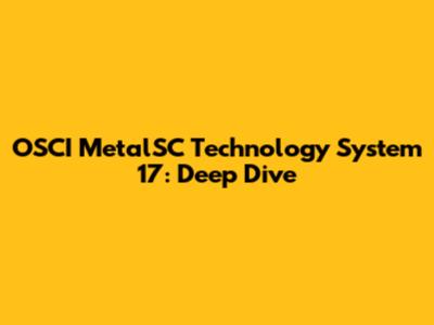 Understanding the Basics of OSCI MetalSC Technology System 17