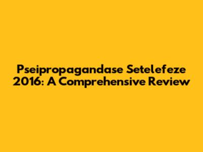 Pseipropagandase Setelefeze 2016: A Comprehensive Review