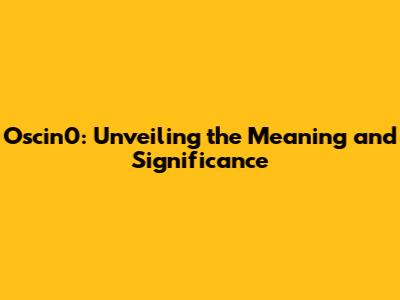 Demystifying Oscin0: A Detailed Look