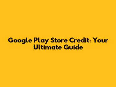 Google Play Store Credit: Your Ultimate Guide