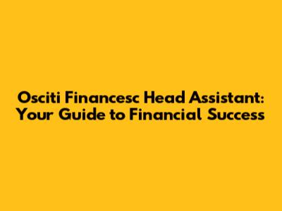 Hey there, financial enthusiasts! Ready to dive into the world of Osciti Financesc Head Assistant? This isn't just about crunching numbers; it's about building a financial powerhouse. We're talking about mastering the art of financial strategy, ensuring your finances are optimized, and ultimately achieving financial success. This guide will walk you through everything you need to know about the Osciti Financesc Head Assistant, from understanding its core functions to implementing it for maximum impact. Buckle up, because we're about to embark on a journey that will transform your financial outlook. We'll explore how this assistant can revolutionize the way you manage your money, make informed investment decisions, and ultimately secure your financial future. This isn't just about following instructions; it's about adopting a new mindset, a proactive approach to financial management that will empower you to take control of your destiny. So, are you ready to become a financial guru with the help of the Osciti Financesc Head Assistant? Let's get started!