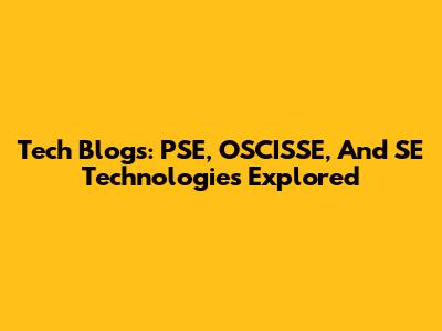 Tech Blogs: PSE, OSCISSE, And SE Technologies Explored