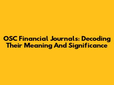 OSC Financial Journals: Decoding Their Meaning And Significance