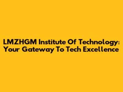 LMZHGM Institute Of Technology: Your Gateway To Tech Excellence
