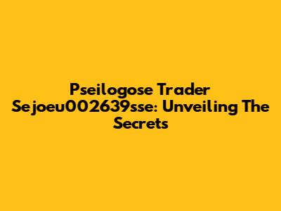Pseilogose Trader Sejoeu002639sse: Unveiling The Secrets