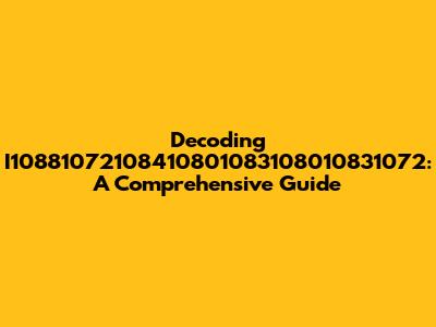 Decoding I10881072108410801083108010831072: A Comprehensive Guide