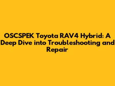 Hey everyone! Today, we're diving deep into the world of the OSCSPEK Toyota RAV4 Hybrid. This guide is your go-to resource for understanding common issues, troubleshooting tips, and potential repair solutions for your beloved hybrid SUV. Let's get started!