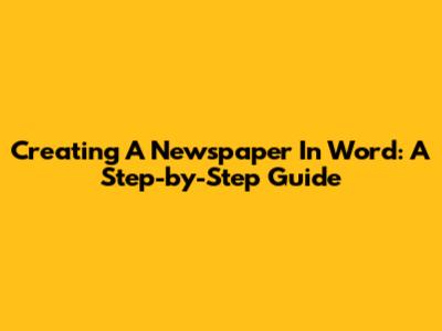 Creating A Newspaper In Word: A Step-by-Step Guide