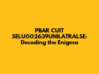 Ever stumbled upon a cryptic string of characters and wondered what secrets it holds? Well, today, we’re diving deep into the mysterious world of PBAR CUIT SELU002639UNILATRALSE. It sounds like something straight out of a hacker movie, right? Don't worry, though, we're going to break it down and try to understand what it might actually mean or refer to. This article aims to explore potential interpretations, analyze its components, and provide a comprehensive overview for anyone curious about this intriguing sequence. Whether you're a seasoned coder, a student, or just someone who loves puzzles, this exploration promises to be an enlightening journey. Let's get started and unravel this digital enigma together!