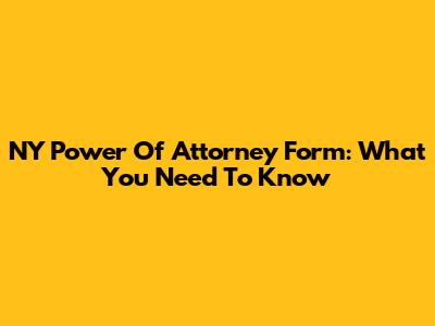 NY Power Of Attorney Form: What You Need To Know