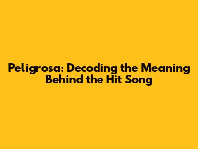 Hey music lovers! Ever gotten a song stuck in your head and just had to know what it means? Well, today, we're diving deep into the meaning of "Peligrosa" – a track that's been making waves. We'll unpack the lyrics, explore the story it tells, and maybe even discover a few hidden gems along the way. So, grab your headphones, get comfy, and let's decode this intriguing tune together!