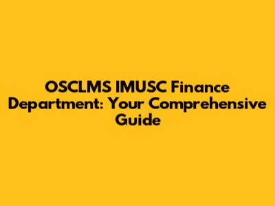 OSCLMS IMUSC Finance Department: Your Comprehensive Guide