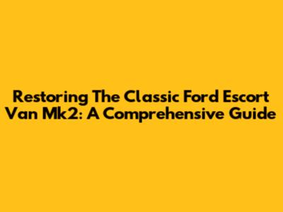 Restoring The Classic Ford Escort Van Mk2: A Comprehensive Guide