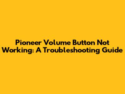 Step-by-Step Troubleshooting for Your Pioneer Volume Button
