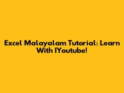 Excel Malayalam Tutorial: Learn With IYoutube!