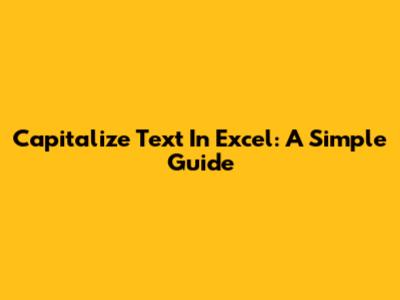 Capitalize Text In Excel: A Simple Guide