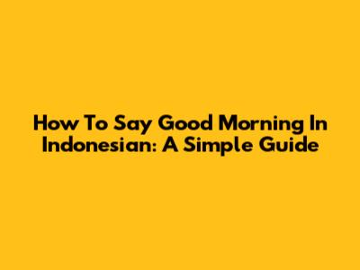 How To Say Good Morning In Indonesian: A Simple Guide