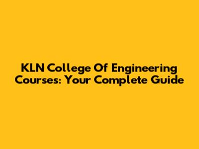KLN College Of Engineering Courses: Your Complete Guide