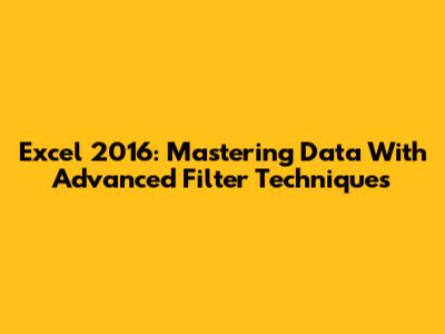 Excel 2016: Mastering Data With Advanced Filter Techniques