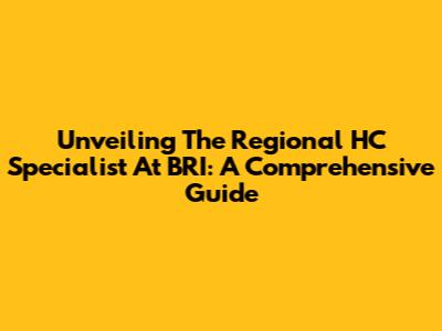 Unveiling The Regional HC Specialist At BRI: A Comprehensive Guide