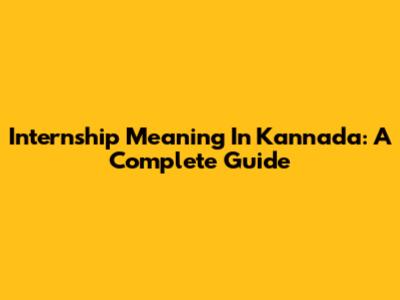 Internship Meaning In Kannada: A Complete Guide